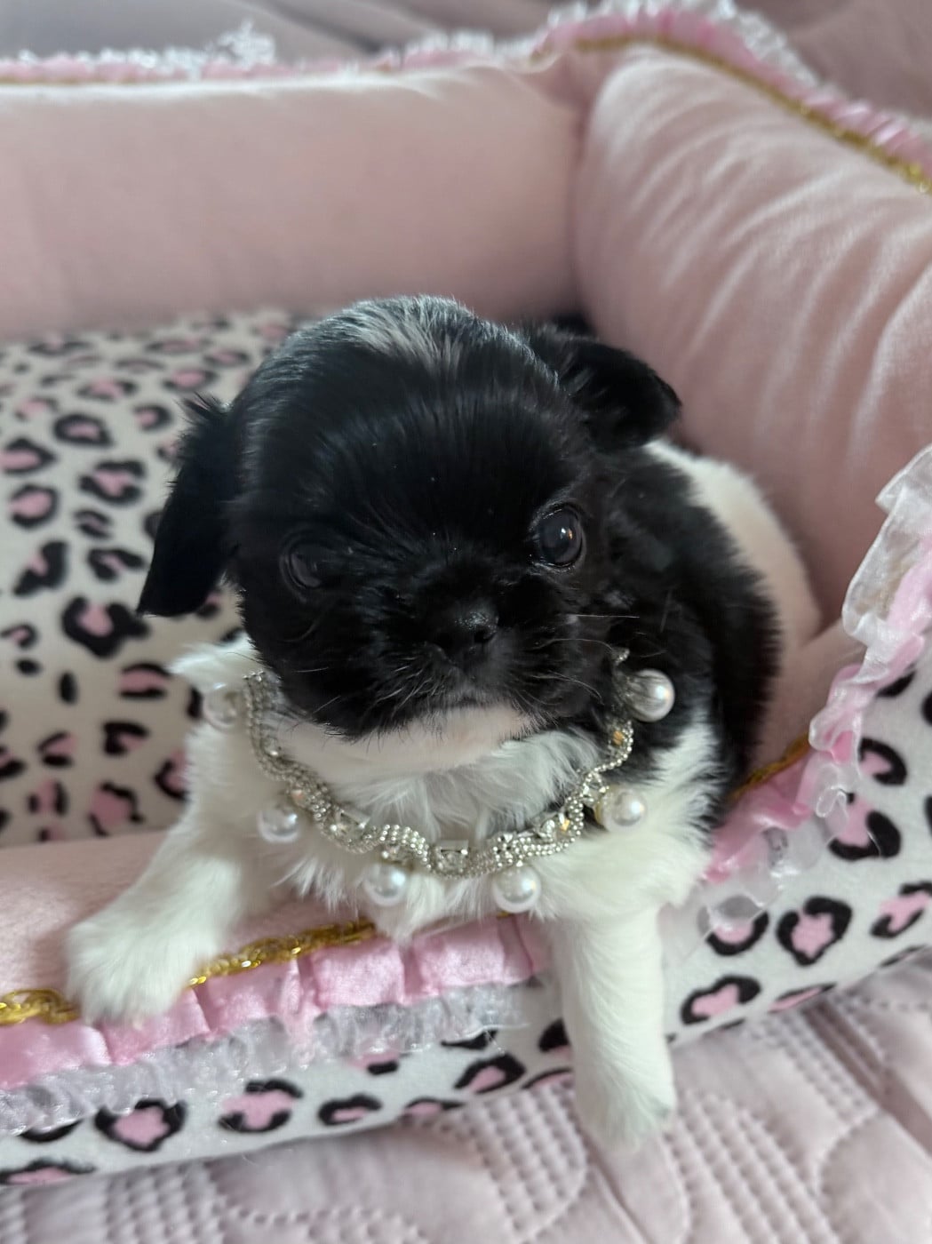 Somptueux petit mâle de couleur noir et blanc poils long